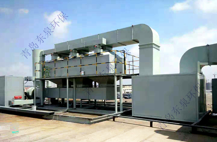漆霧廢氣催化燃燒設(shè)備針對中低濃度廢氣,利用吸附-催化燃燒工藝進(jìn)行回收凈化的過程如下:有機(jī)廢氣經(jīng)去除粉塵等預(yù)處理后,進(jìn)入裝有高效吸附劑的吸附器,空氣得到凈化。隨著吸附的進(jìn)行,吸附劑逐漸達(dá)到飽和,在與高溫?zé)峥諝獾慕佑|過程中,有機(jī)廢氣被脫附下來形成高度濃縮的廢氣,同時(shí)吸附床得到再生。再生后的吸附床又可進(jìn)行吸附作業(yè)。經(jīng)脫附形成的濃縮廢氣進(jìn)入催化燃燒器,生成二氧化碳和水達(dá)標(biāo)排放。