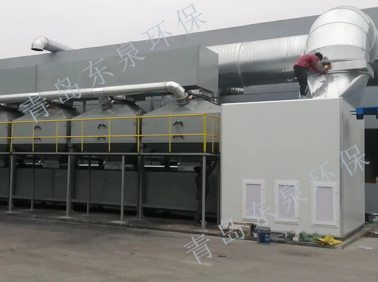 2.經(jīng)過過濾后的廢氣,進入后續(xù)設備的吸附床,吸附凈化的潔凈氣體排放煙囪,吸附在蜂窩活性炭上的有機物,利用高溫氣體(100~120℃)對其進行脫附。高溫氣體來源為后方CO燃燒后的高溫空氣與自然風混合生成。