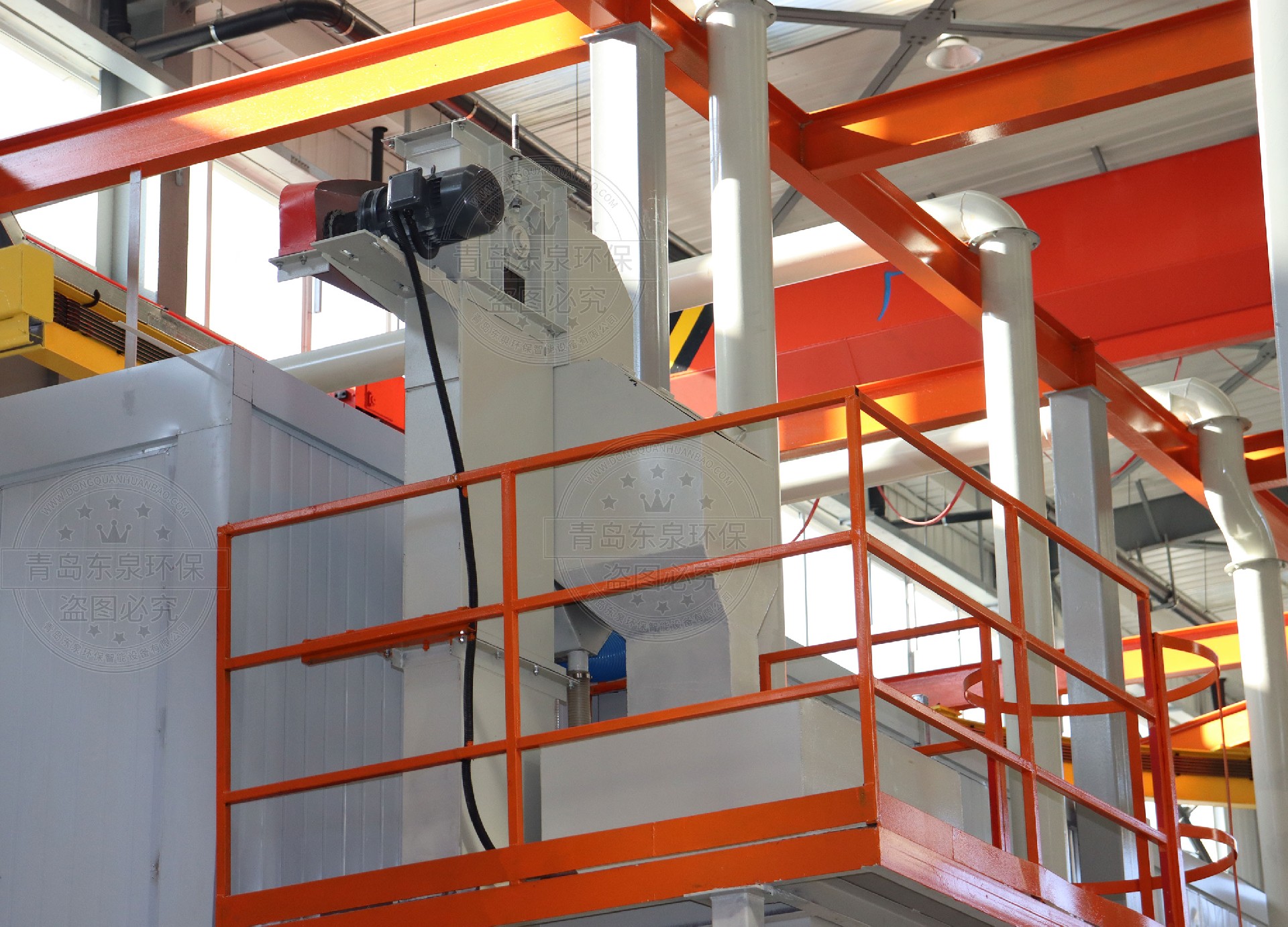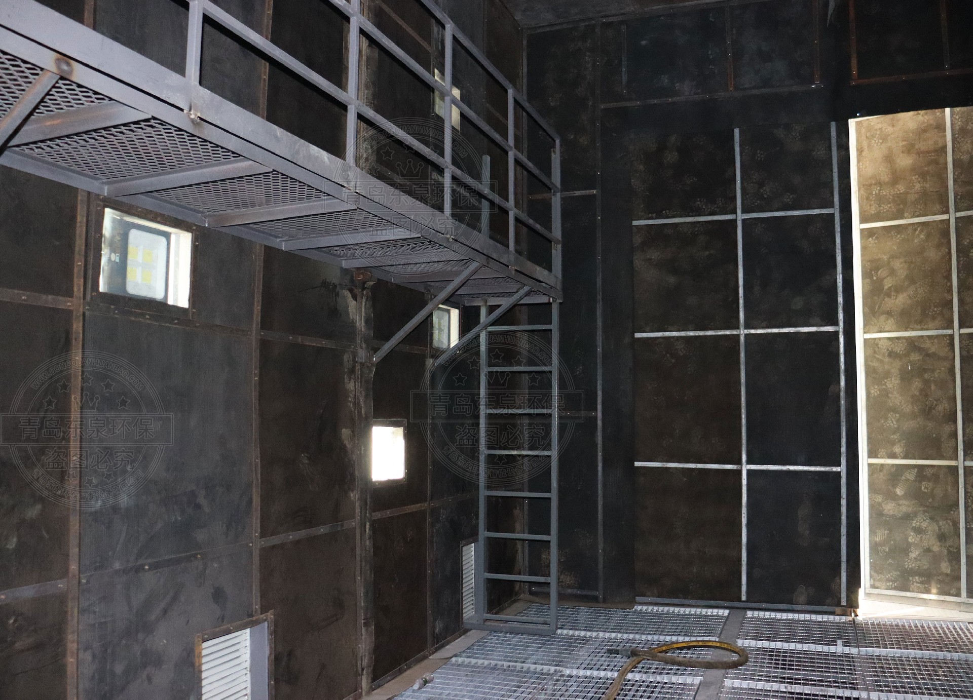 7)為便于工件頂部噴砂,室體兩側(cè)側(cè)壁上配有固定式工作臺,操作方便,節(jié)省空間。