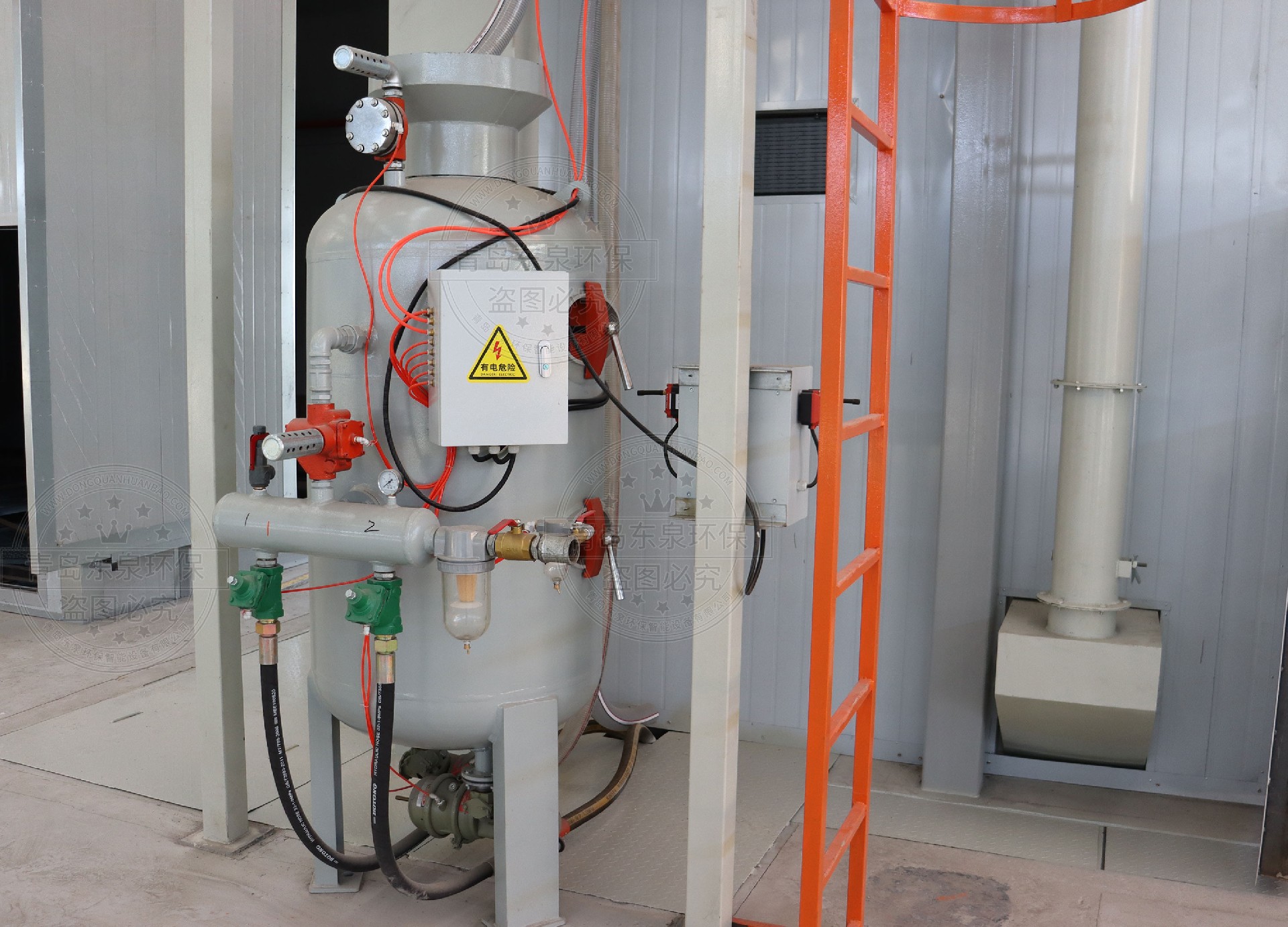 2)噴砂設備采用1臺我公司生產(chǎn)的壓入式高效噴砂機,具有高效率、大容量、寬工作壓力范圍(可在0.6-0.75MPa的壓力范圍內(nèi)正常進行噴砂作業(yè))、噴砂參數(shù)可任意調(diào)節(jié)(工作壓力、砂流量以及助推流量都可進行無級調(diào)節(jié))以及性能穩(wěn)定可靠等特點;